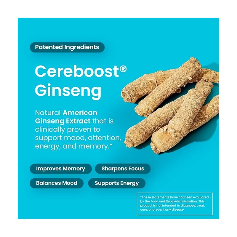 Cereboost® American Ginseng – Helps sharpen focus, improve memory, and reduce mental fatigue Cold-Compression Technology – Preserves ingredient potency for maximum cognitive benefits in every chew.