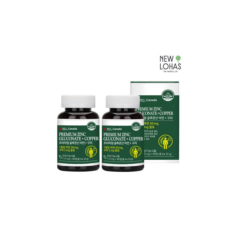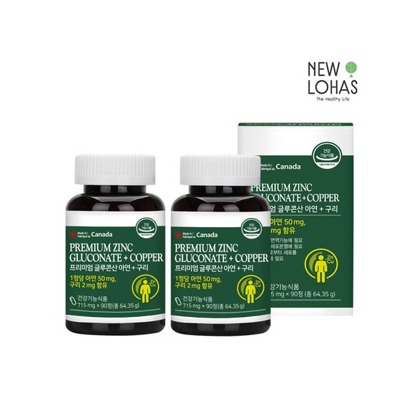 Neurohas Premium Zinc Copper Gluconate 2 Bottles Total 6 Month Supply Zinc Nutrient / 뉴로하스 프리미엄 글루콘산 아연 구리 2병 총 6개월분 아연영양제