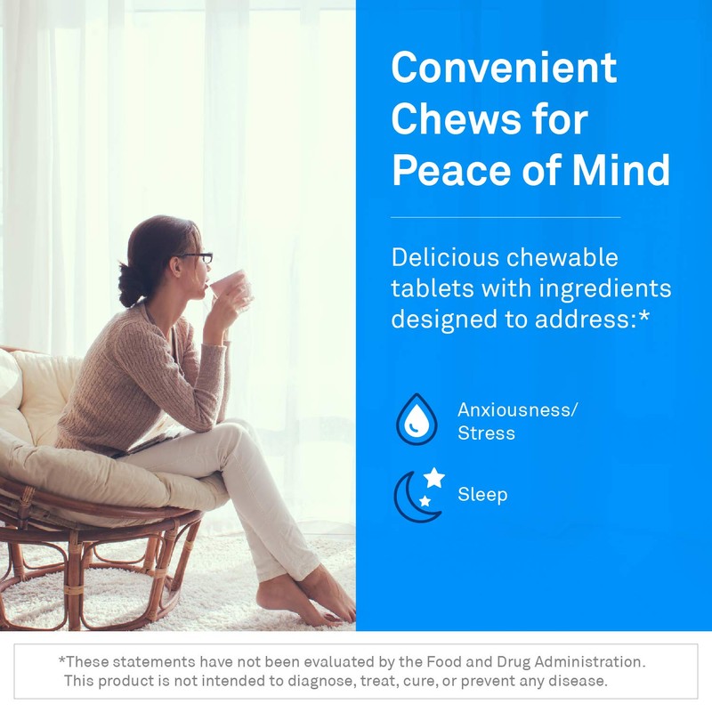 - Chewable, Soothing L-Theanine - This convenient L theanine supplement can be taken at any time of day. Since GABA does not absorb well in supplement form, our formula is designed instead to support GABA from within.*