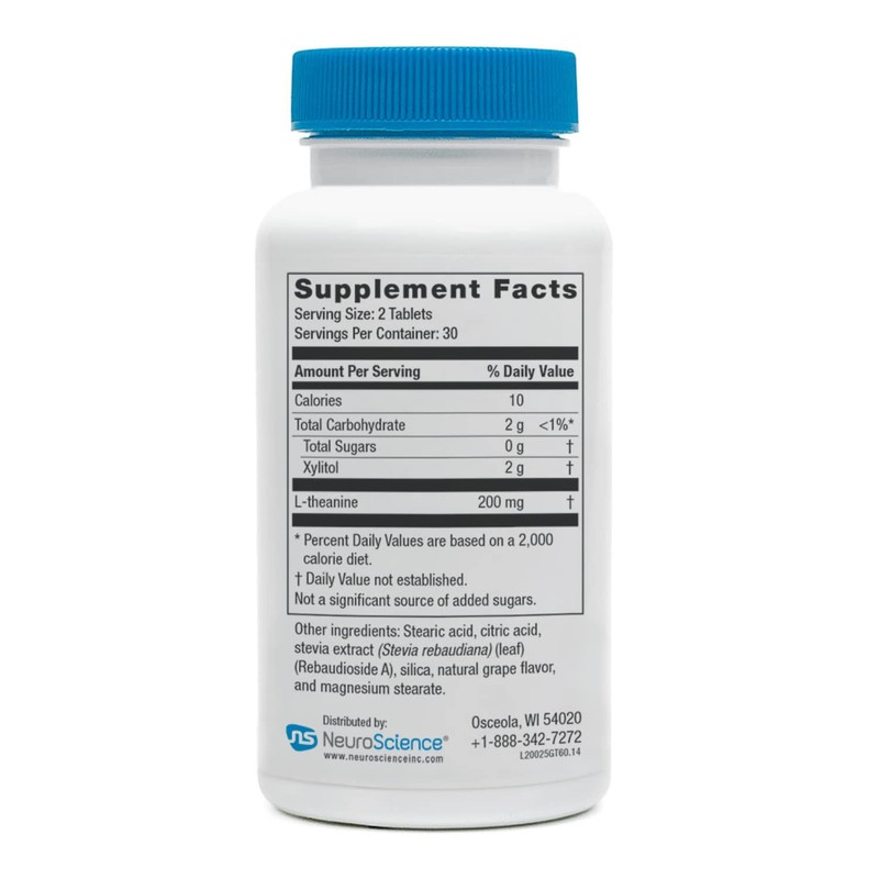 NeuroScience NeuroScience Neuorscience GABA Trex L Theanine Supplement - Calm Aid for Daytime Stress Support & Evening Relaxation - Chewable Grape-Flavored Tablets - Vegan & Non-GMO (60 Tablets)