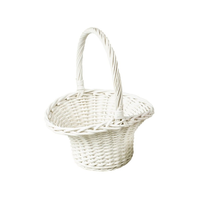 White flower basket with handle for children, scattering basket, wicker basket, wicker basket