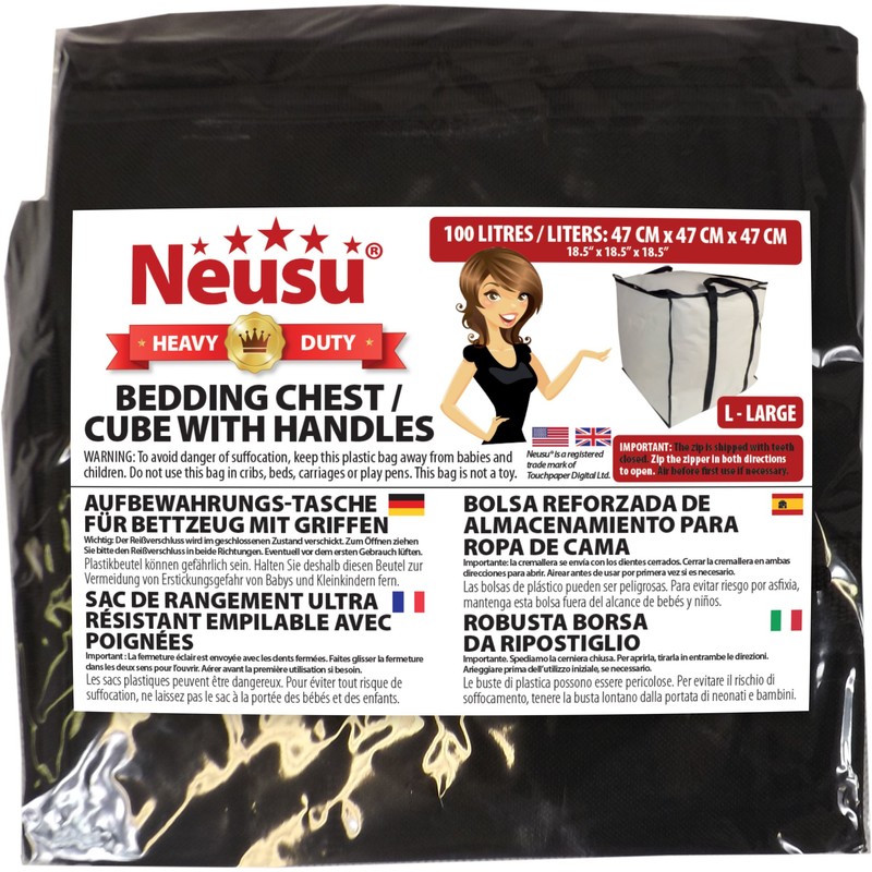 Neusu Bedding and Duvet Storage Bag, Strong Handles Black 100 Litres 47x47x47cm