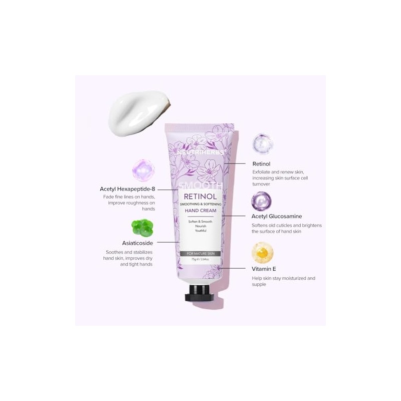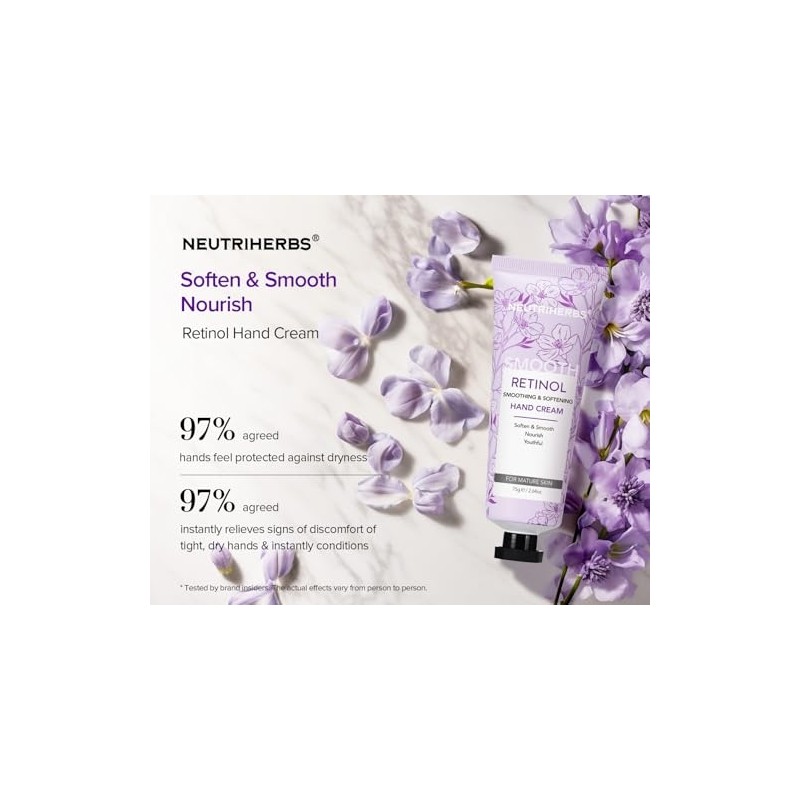 Neutriherbs Retinol Hand Cream, Lightweight Anti-Aging Hand Moisturizer for Hand Wrinkles. Soften Smooth Nourish Hand, Protect Skin, Nails, Cuticles with Green Bamboo Scent - 2.64oz
