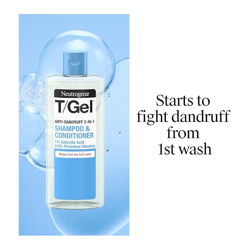 - Product delivery: Neutrogena T/Gel 2 in 1 Anti-Dandruff Shampoo and Conditioner (1x 150ml), dual-action haircare product to help fight dandruff and leave hair soft and shiny in just one step