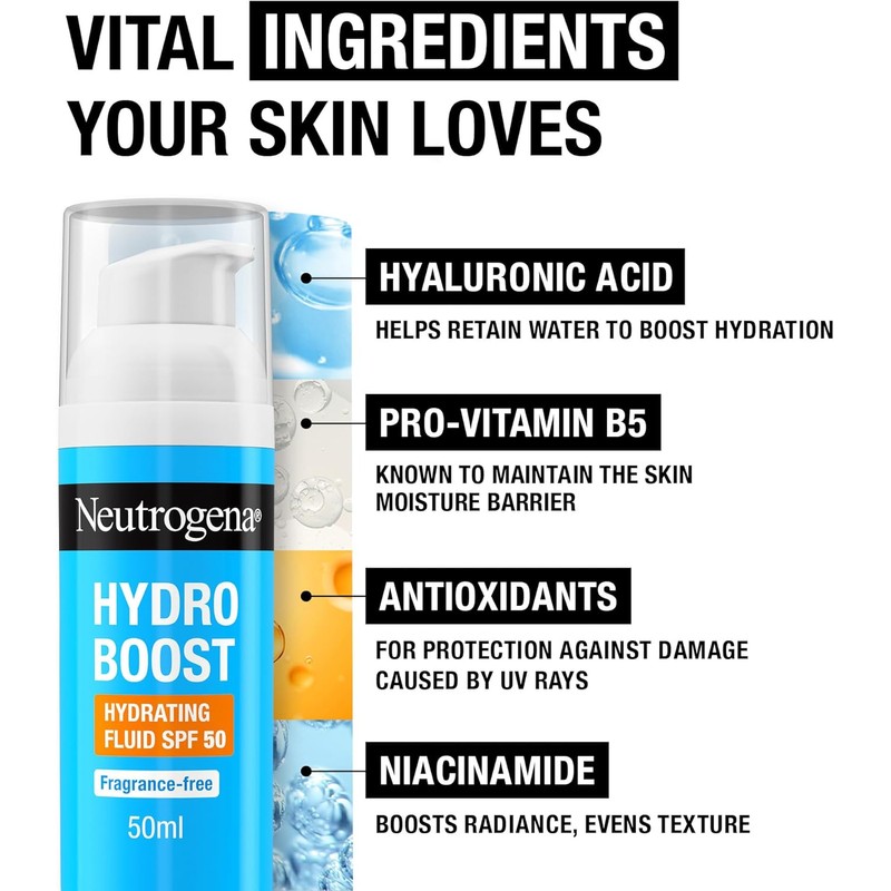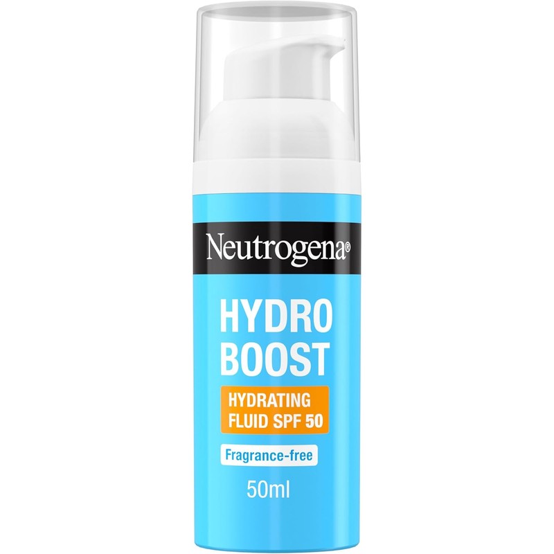 Neutrogena Hydro Boost Hydrating Face Fluid SPF 50, with Hyaluronic Acid, Pro-Vitamin B5 and Niacinamide, Broad Spectrum for Dry Skin, 50ml