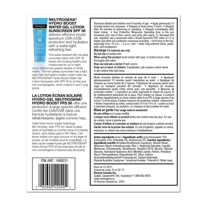 Neutrogena Hydro Boost Water Gel Lotion Sunscreen SPF 50, 3 x 88 mL