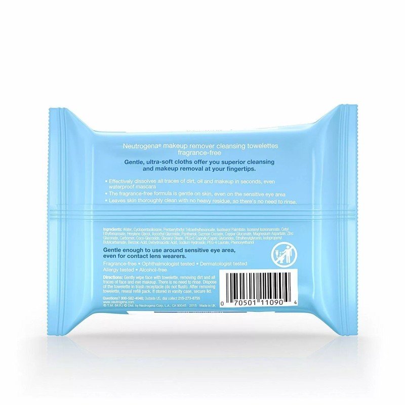 Neutrogena Makeup Remover Facial Cleansing Towelettes Ultra-Soft Cloths 25 Count