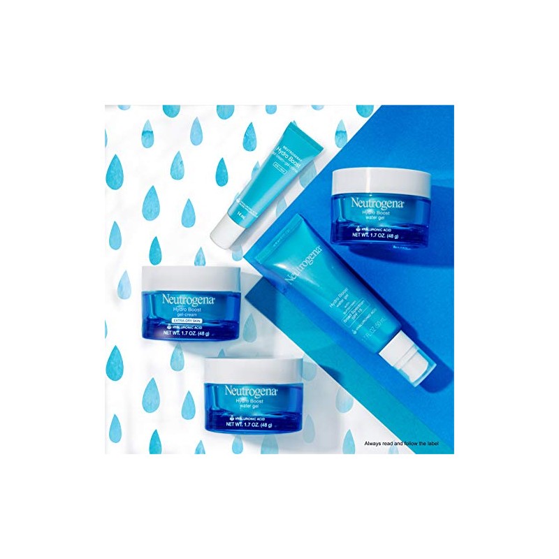 Instantly hydrate your skin so it’s smooth and supple with Neutrogena Hydro Boost Face Gel Water Cream. Gentle enough for daily use on all skin tones and types, including dry and oily skin, this unique, lightweight moisturizer absorbs quickly, like a gel, but has the long-lasting, intense moisturizing power of a cream, to help soothe skin and replenish dryness. The face cream from a dermatologist-recommended skincare brand boosts skin's hydration level immediately after application and then locks in that skin-quenching moisture all day for long-lasting, lightweight comfort. Formulated with hydrating hyaluronic acid serum, a dermatologist-recommended ingredient that’s found naturally in skin, the gentle gel cream acts as a sponge for dry skin cells, moisturizing with up to 1,000 times its weight in water. After regular use, skin becomes softer, smoother, and more supple. The daily hydrating face moisturizer features a non-comedogenic formula that won’t cause breakouts, and is oil-free, dye-free, and fragrance-free. Designed to feel light and non-greasy on skin, the rich yet lightweight face lotion can be worn under or over makeup. Use Neutrogena Hydro Boost Gel Face Cream as part of your at-home hydrating skincare products routine morning and night. To help skin look and feel its best, cleanse skin first with Neutrogena Hydro Boost Hydrating Cleansing Gel.