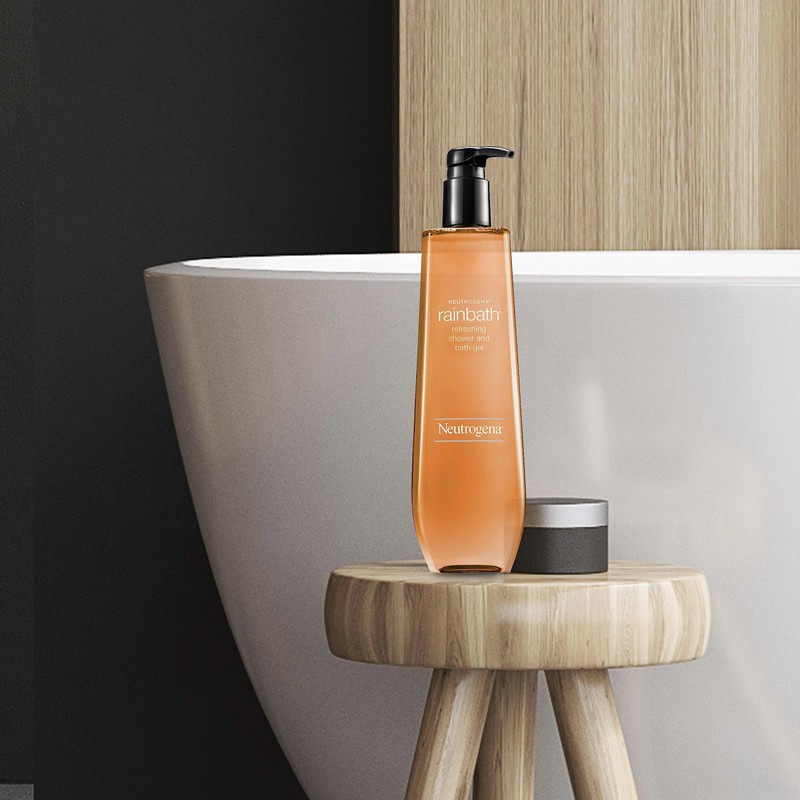 - 32-fluid ounce pump bottle of Neutrogena Rainbath Refreshing Shower and Bath Gel featuring the refreshing original scent of spices, fruits, and herbs that provides a clean burst that awakens your senses and refreshes your entire body