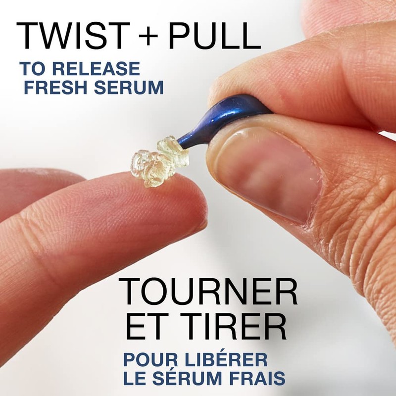 - Apply the serum nightly after cleansing and before moisturizing by twisting open the capsule and smoothing over face.