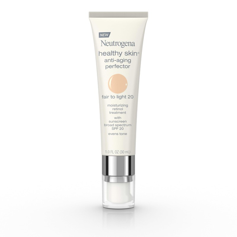 Use Neutrogena Healthy Skin Anti-Aging Perfector Tinted Facial Moisturizer with SPF 20 sunscreen to help reduce the appearance of fine lines. This all-in-one daily moisturizer combines the anti-aging properties of retinol with an SPF 20 moisturizer to offer blendable sheer coverage that helps even tone and smooth skin's texture while protecting against skin-damaging sunrays. This tinted moisturizer is enriched with clinically proven retinol treatment as well as vitamins and antioxidants to fight the appearance of wrinkles even after you take it off. Neutrogena Healthy Skin Anti-Aging Perfector SPF 20 works across skin tones for a natural, dewy finish with sheer coverage.