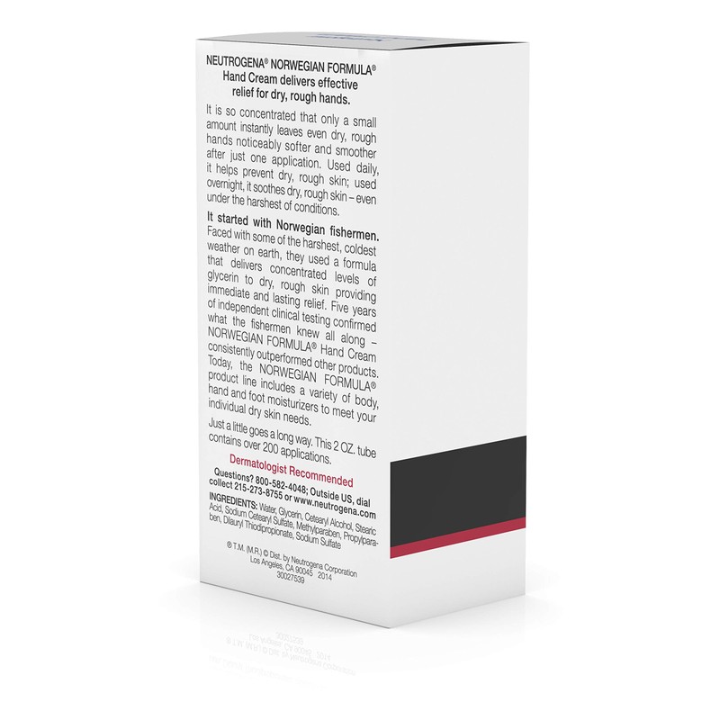 - 2-ounce tube of fragrance-free Neutrogena Norwegian Formula Hand Cream works to hydrate and moisturize hands, delivering effective relief for dry, rough skin