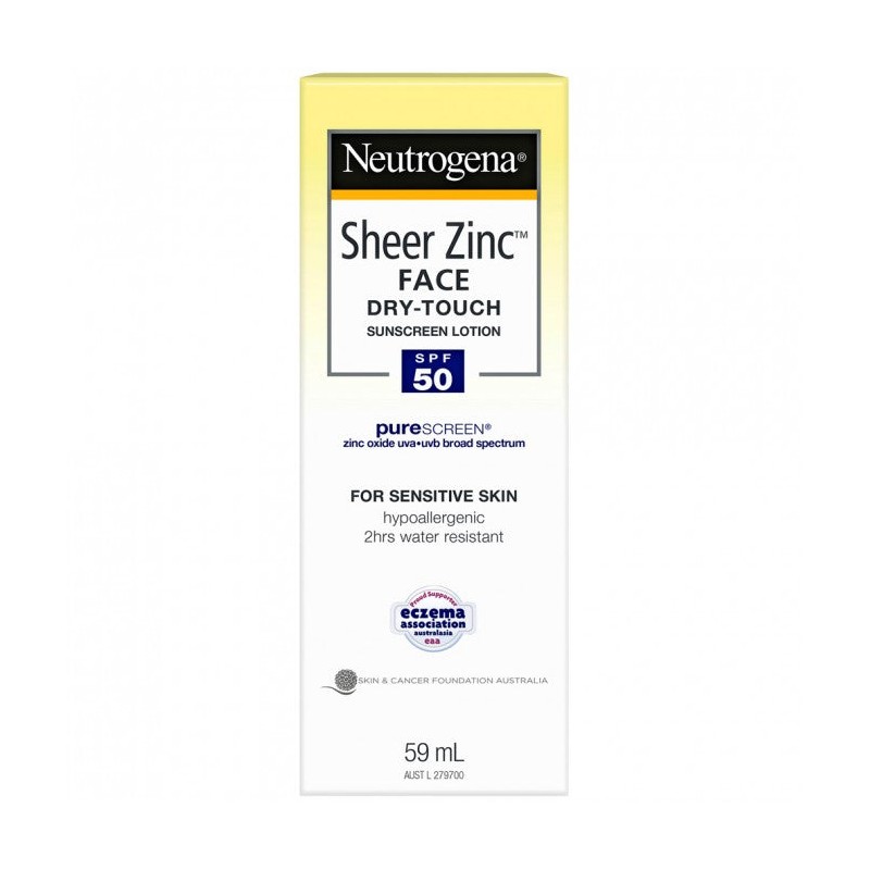Neutrogena® Sheer Zinc™ Face Sunscreen Lotion is a mineral based SPF 50 broad spectrum sunscreen that provides high protection while being gentle on skin. Suitable for daily protection, it contains Vitamin E, a skin conditioning anti-oxidant and leaves an invisible finish on skin.