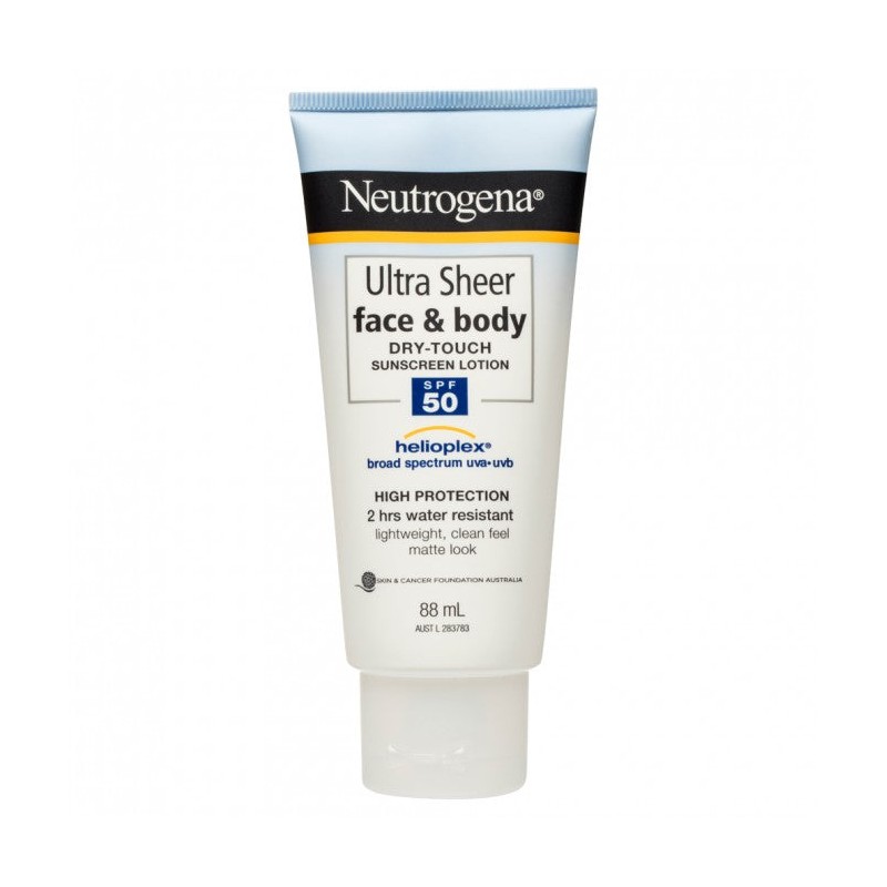 Neutrogena® Ultra Sheer® Face & Body SPF50+ Sunscreen Lotion is an ultra lightweight sunscreen that provides high sun protection with a weightless feel.