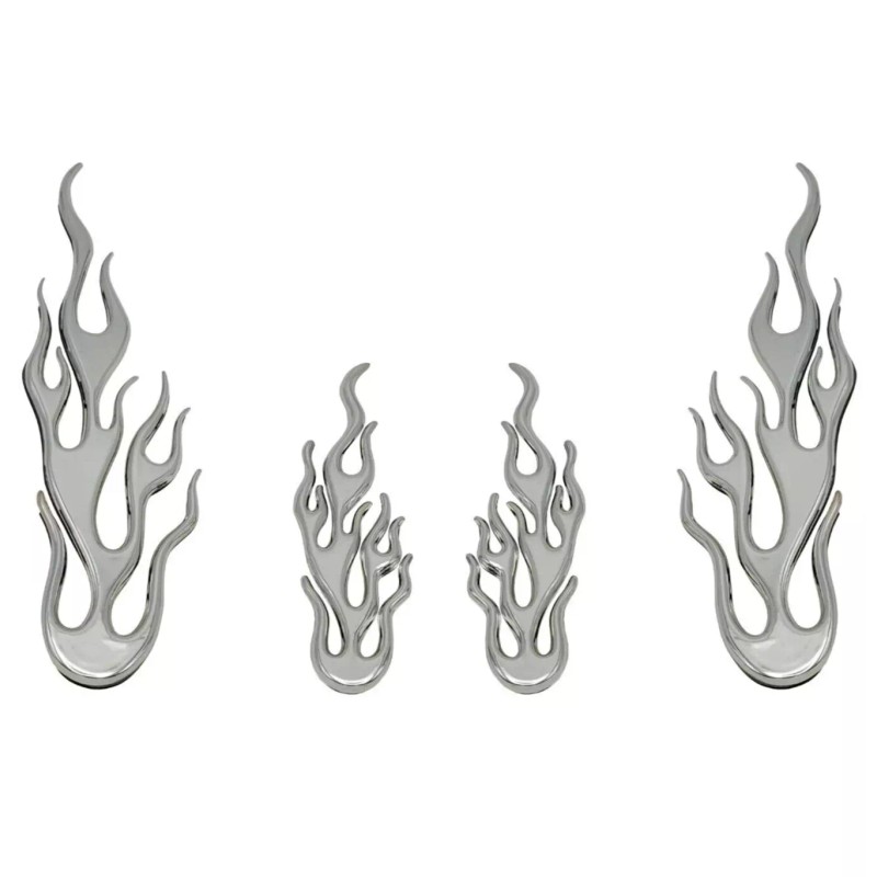 Neutron Motorsports 3D CHROME ABS FLAMES CAR TRUCK STICK ON EMBLEM DECAL 4PCS