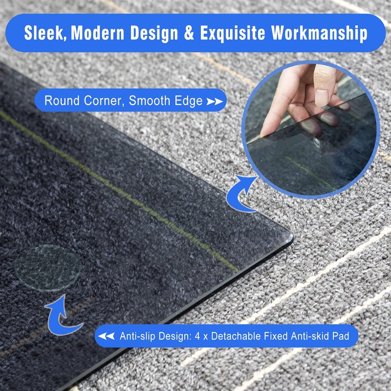 - Anti-slip Design: 4 x Detachable Fixed Anti-skid Pad are included in the package, to keep your glass chair mat firmly in place. It ensures easy chair movement without skidding around and ensures safety when walking on it.