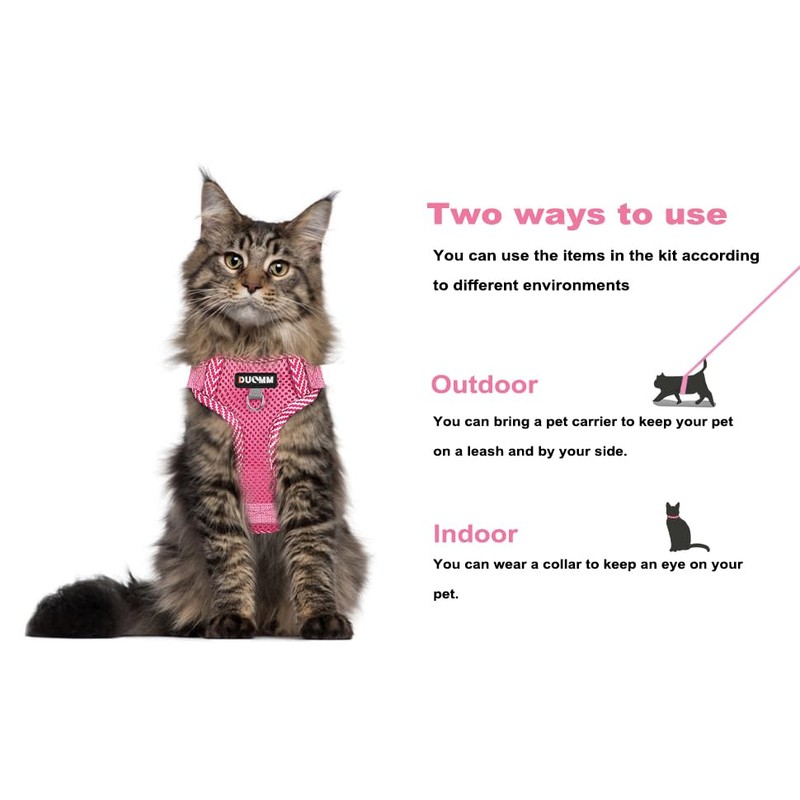 - Breathable Fabric - The cat harness is made of super comfortable and breathable mesh, so you don't have to worry that your pet will feel uncomfortable.High quality and durable material ensures you pet will not easy damage the harness.