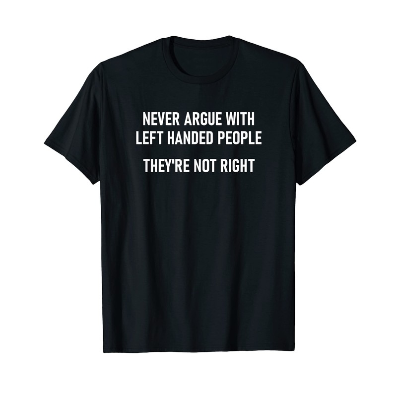 Never Argue With Left Handed People, Funny, Jokes, Sarcastic T-Shirt