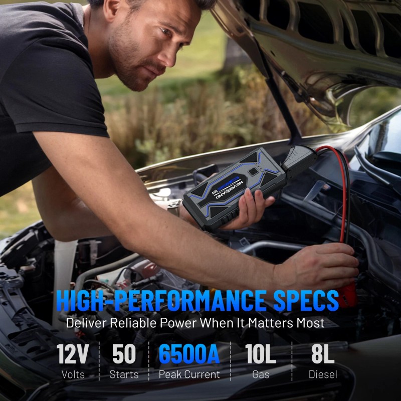 NEVERLAND 6-IN-1 USB Car Jump Starter Booster Battery Charger Power Bank 6500A 12800mAh