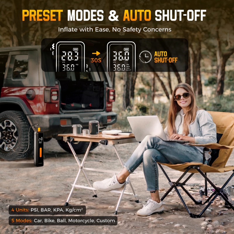 A3: Our Neverland portable tire pump for car will automatically shut down when it reaches the preset pressure value.