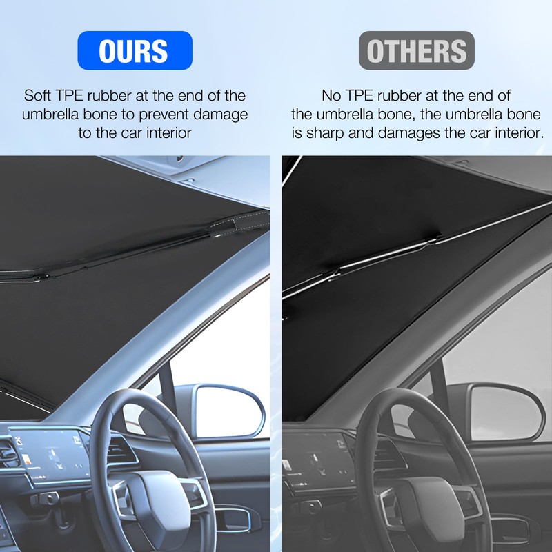 - Space-Saving & Portable: Unlike bulky folding shades, our retractable sunshade umbrella collapses into a compact size (fits in your glove box or door pocket). The lightweight yet durable frame makes it easy to carry on road trips, camping, or daily commutes. The included travel pouch keeps it clean and scratch-free. The ultimate portable sun shade for car owners who value convenience and storage efficiency
