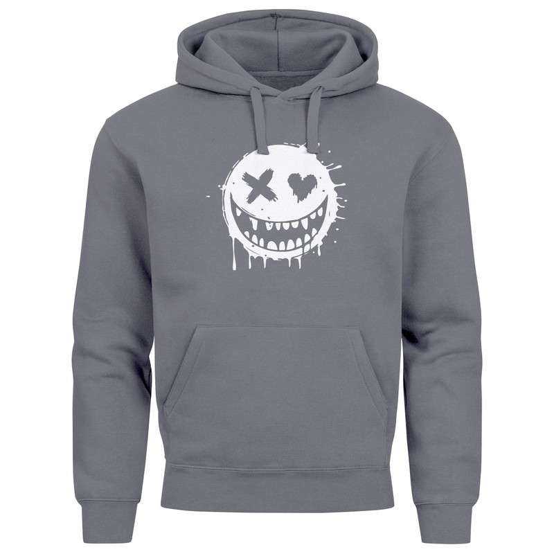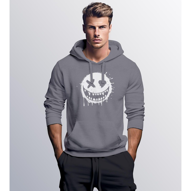 Neverless® Men's Hoodie Print Smiling Drip Face Fashion Street Style, Scary Face Convoy Grey