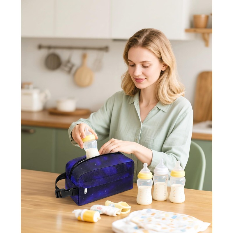 Neverwhy Small Insulated Snack Bag Lunch Box,Collapsible Reusable Small Lunch Bag with Snap Buckle Handle for Beach Travel Picnic,Starlit Sky 5-Can(3L)