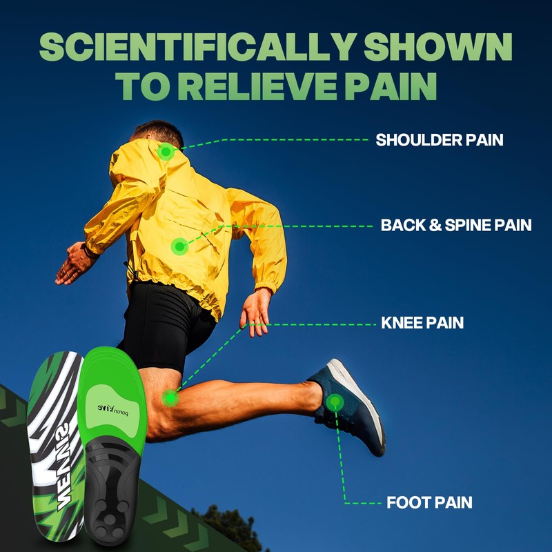 - Firm Arch Support + Spring Shock Absorption: 8-hour nurse & construction tests show 80% heel-pain reduction. These arch support inserts for men and women use built-in springs—unlike collapsing memory foam—to shield knees & back from impact and relieve plantar fasciitis, high arches, flat feet, metatarsalgia & heel pain
