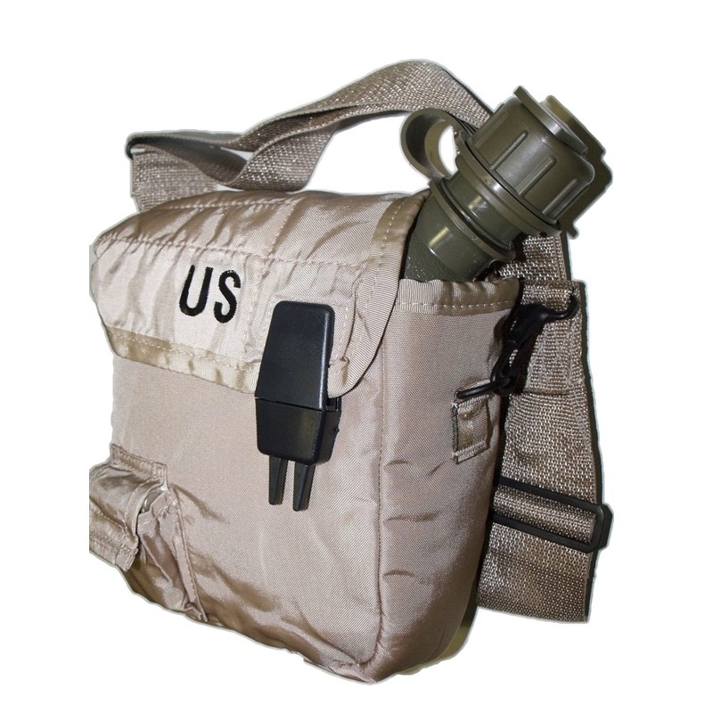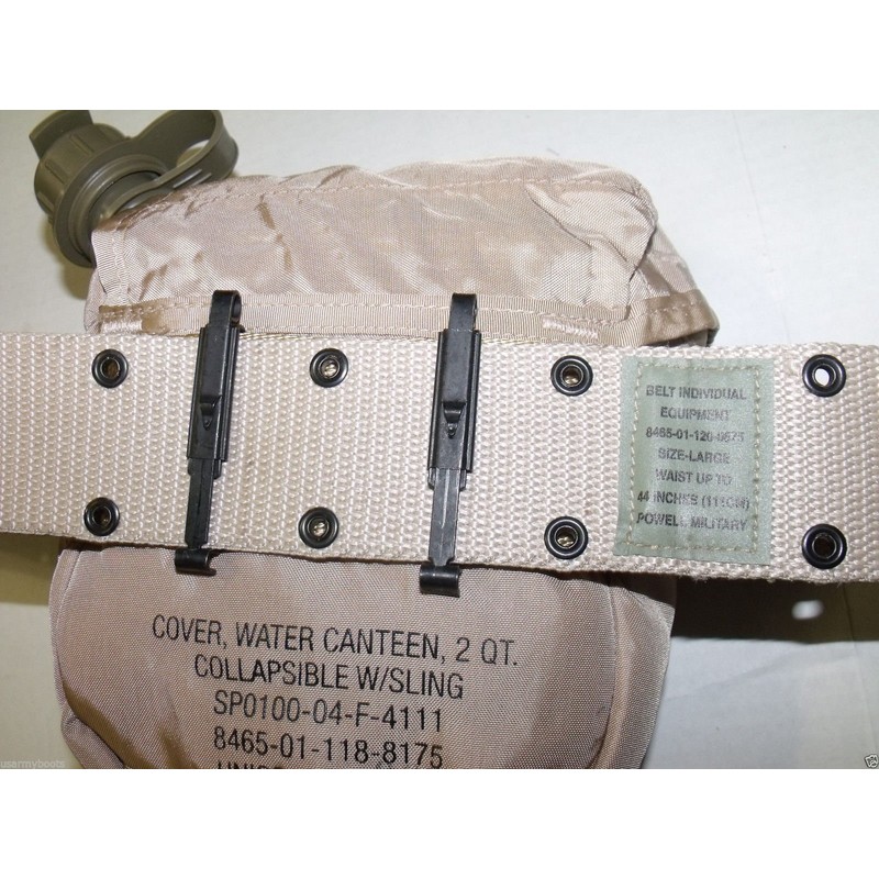 New 2 QT Collapsible Water Canteen + Desert Tan Cover Pouch with Sling US Army Military by US Goverment GI USGI