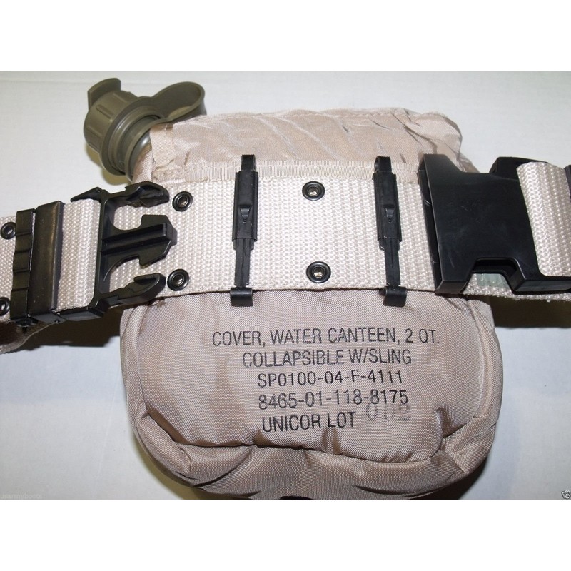- BRAND NEW 2 QT Collapsible Water Canteen + Insulated Desert Tan Canteen Pouch with Sling