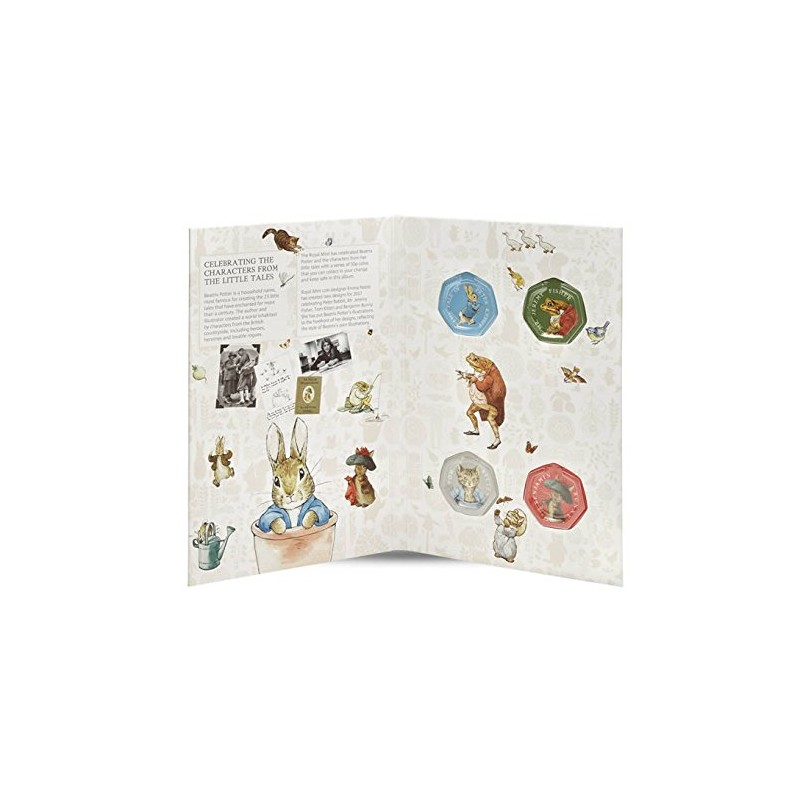 - includes a choice of 1 beatrix Potter coin. Peter Rabbit, Tiggywinckle, Squirrel Nutkin, or 150th Anniversary of Beatrix Potter.