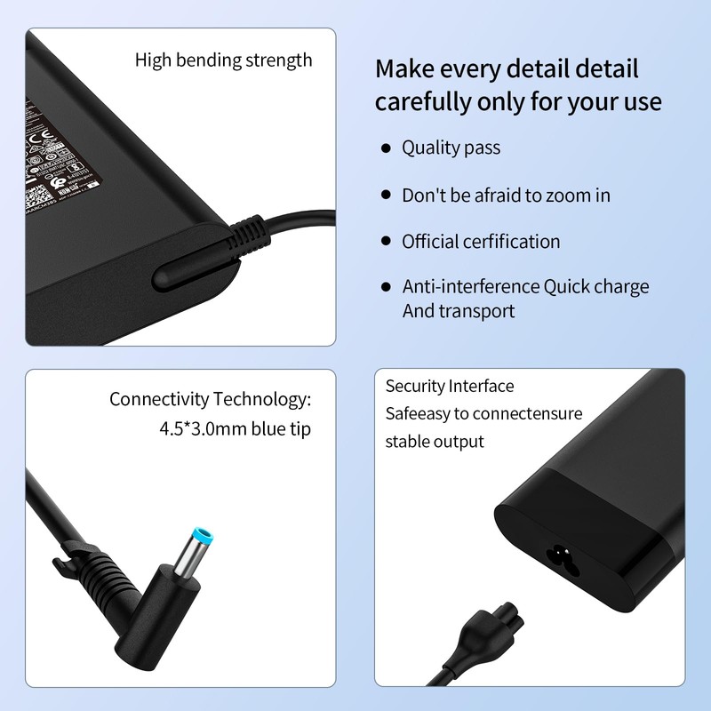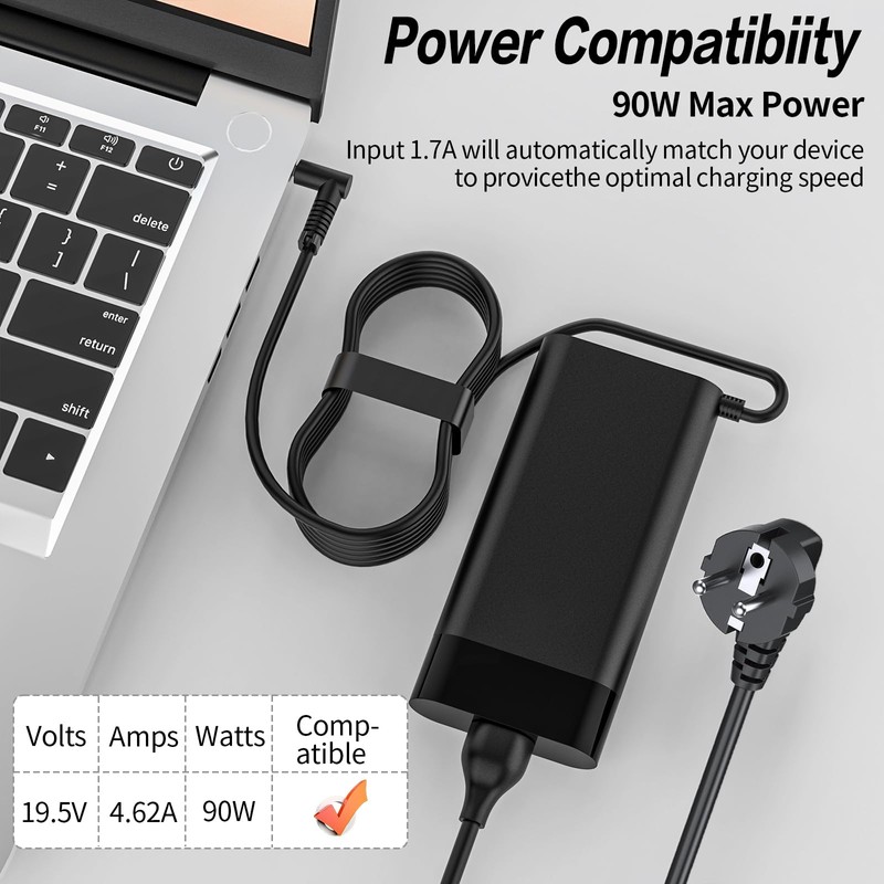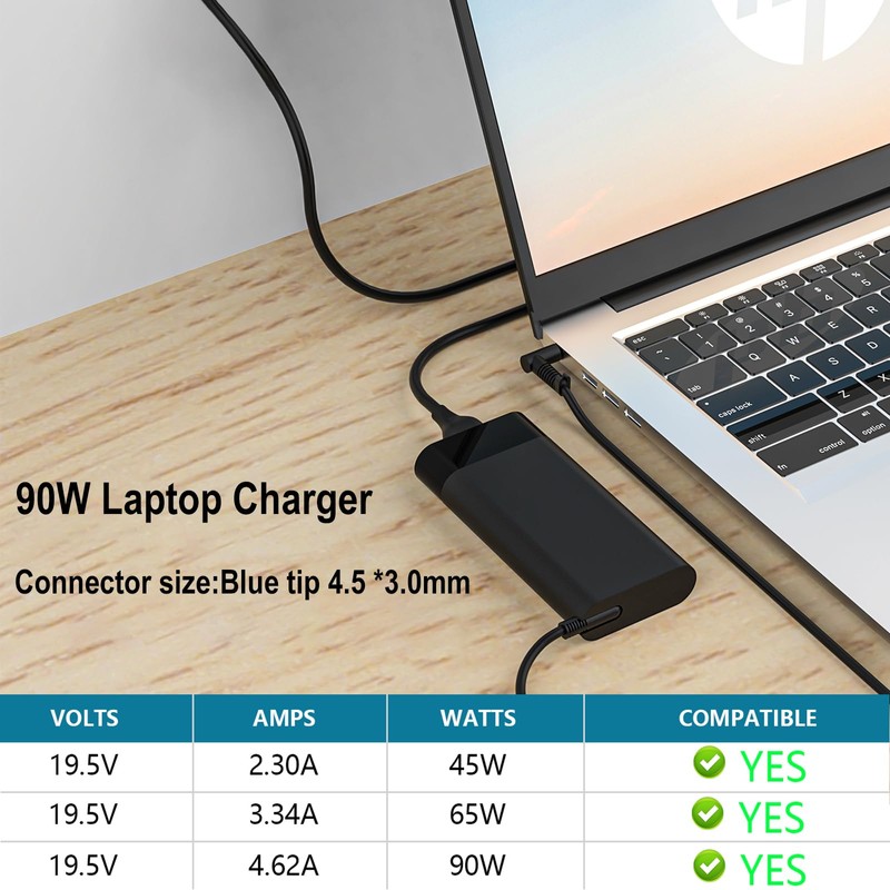 - 1.【Specifications】:Input Voltage Range:100-240V 50-60Hz; Output: 19.5V 4.62A 90W; Connector Size:Blue Round Tip, 4.5*3.0mm; (Please check your laptop model and parameters before purchasing!)