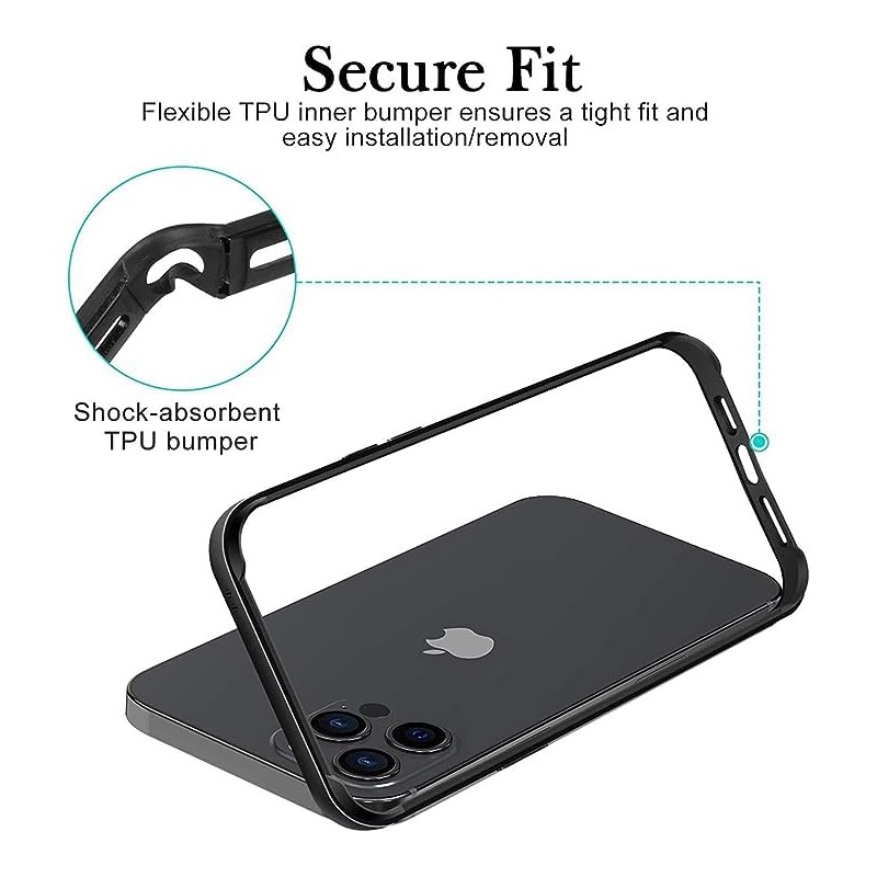 New Aluminum Frame Metal Bumper Frame Slim Hard Case Cover for iPhone16 ProMax, Metal Frame Armor with Soft Inner Bumper, Raised Edge Protection (Black, for iPhone16 Pro Max)