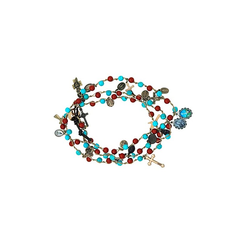 New Antiqued Style Catholic Rosary Wrap Bracelet with Bronze Toned Charms, One Size to Elevate Your Style with Religious Jewelry TEH2782WIXX