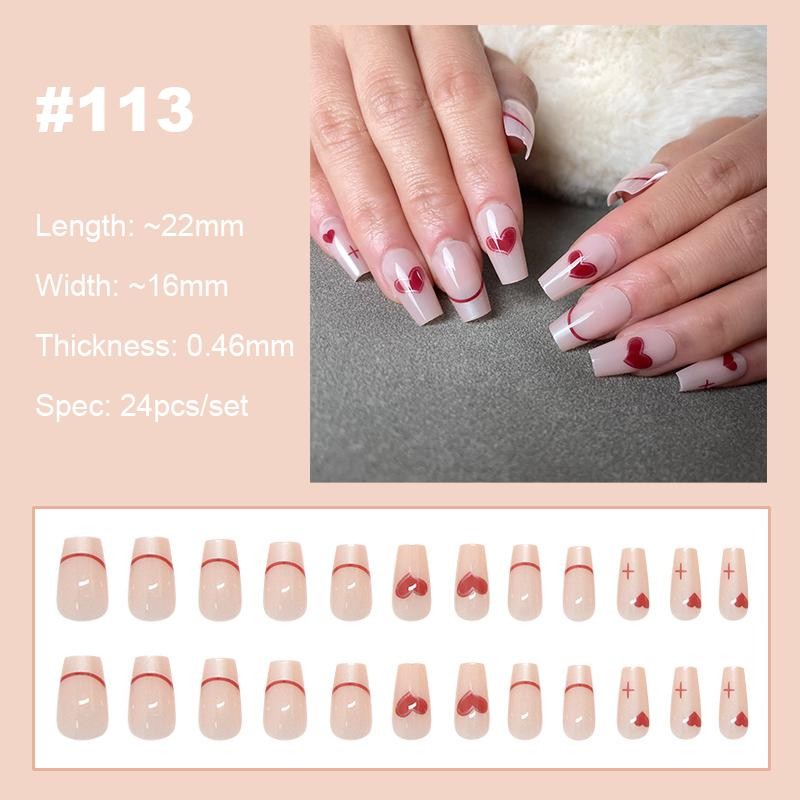 【NEW ARRIVALS!】 Press on Nails French Tip Bling Coffin Short Almond Fake Nails with Designs Glue on Nails Long Glossy Gradient Medium False Nails Reusable Full Cover Thick Nail Acrylic Stick on Nails for Women Girls 24 Pcs:_113