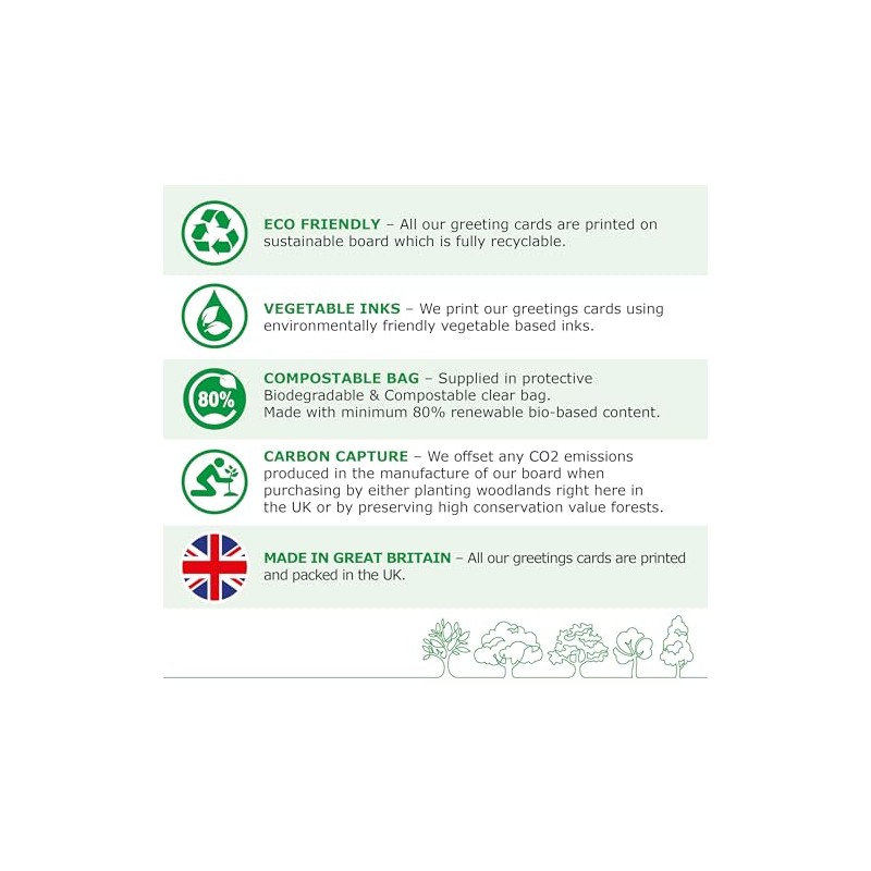 - MADE IN THE UK – Designed, printed and packed in the UK, our cards are made from board which is manufactured in Europe. Cards have message on inside.
