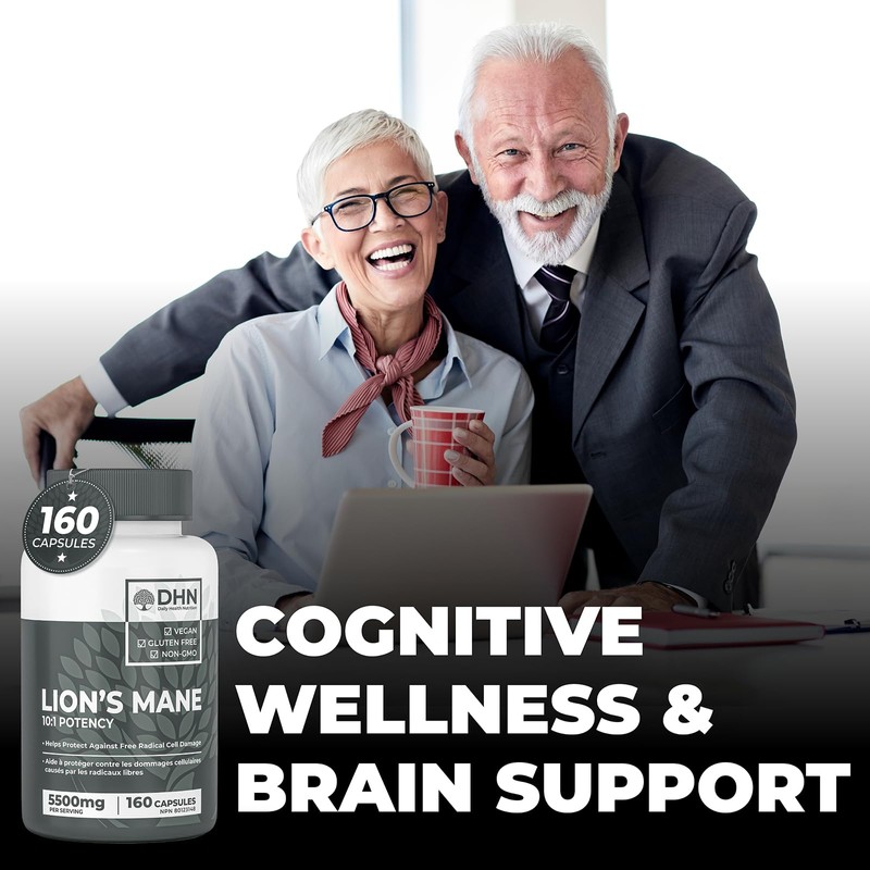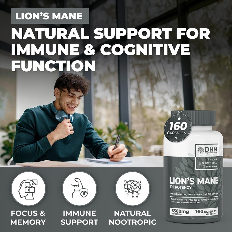 **New Bonus Size** 160 Capsules of Premium Lion's Mane Mushroom Powder | Antioxidant & Immune Support | Natural Nootropic Properties | Canadian Made, Quality Assured