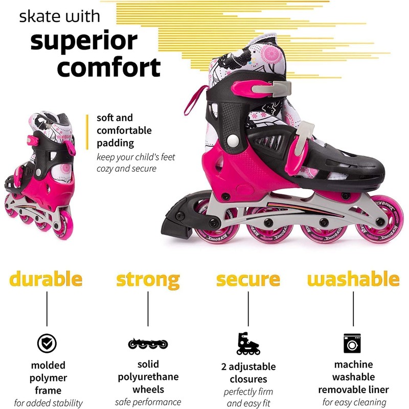 Great for both girls and boys with an adjustable size feature, these premium quality inline skates will grow with your little one’s feet, offering more years of fun! Well-made and comfy, they will cradle your young one’s feet and provide optimal support and stability.