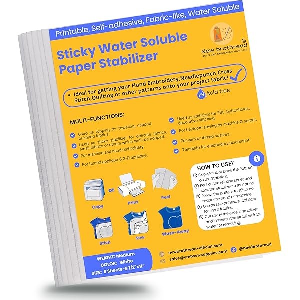 New brothread 6PCS 8.5"x11" Sticky Water Soluble Embroidery Stabilizer Printable Paper Stabilizer - Medium Weight - Allowed for Print or Draw Patterns Best for Hand & Machine Embroidery