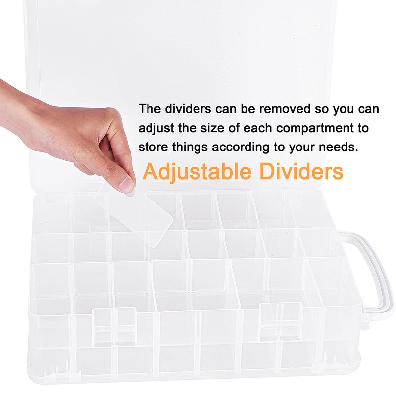 • ★ Adjustable Dividers: The dividers of storage box can be removed so you can adjust the size of each compartment to store things according to your needs. Except storing thread spools, it is also perfect for storing embroidery floss, bobbins, jewelries, small crafts, small toys, hardware, fishing tackles etc.