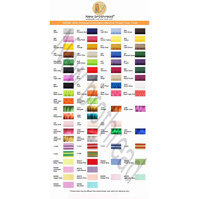 New brothread Huge Spool 5000M Polyester Machine Embroidery Thread are ideal for All Embroidery Machines including Home based, Semi-industrial, Industrial and Commercial Embroidery Machines.