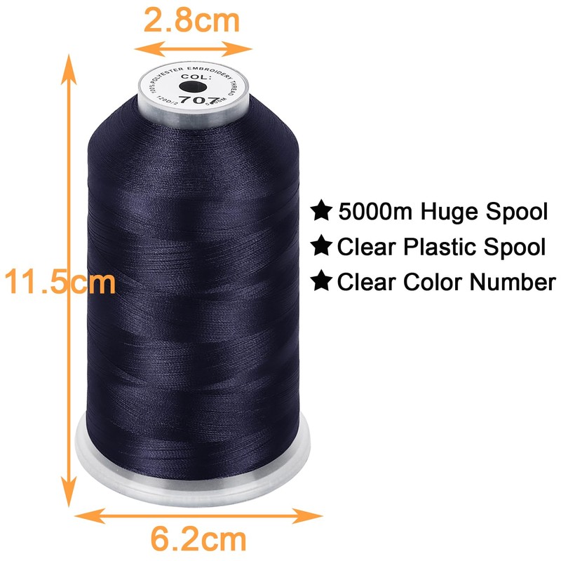 - ★★ Ideal Weight and Huge Spool - Each Spool is 40 W.T. (120D/2) in thickness and 5000M (5500Y) in length, which makes these spools of polyester embroidery machine thread ideal for All Embroidery Machines including Home based, Semi-industrial, Industrial and Commercial Embroidery Machines. (Note: home based machine users MUST use an upright thread stand/holder to help feeding our 5000m embroidery threads to your machine properly!)