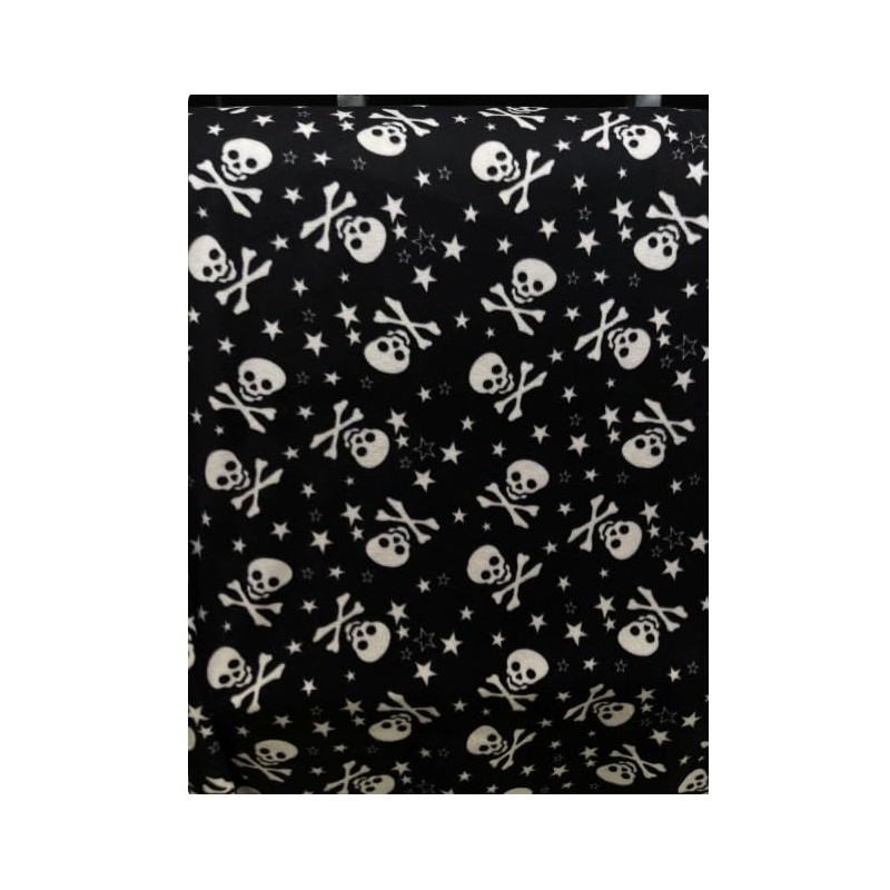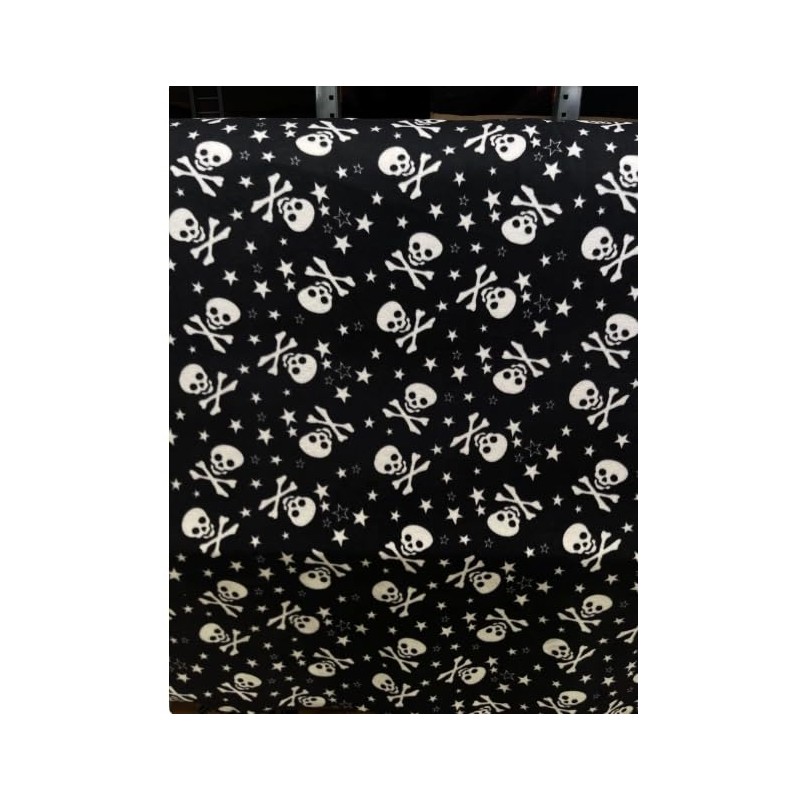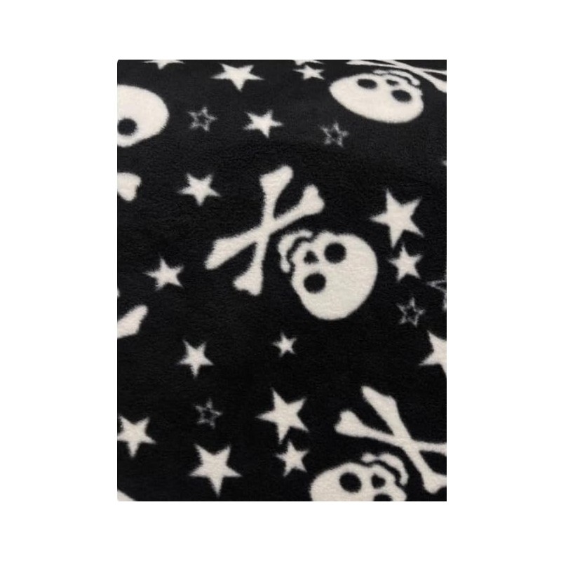 New Calabera Emo White Skulls on Black Base Fleece Fabric by The Yard or Roll