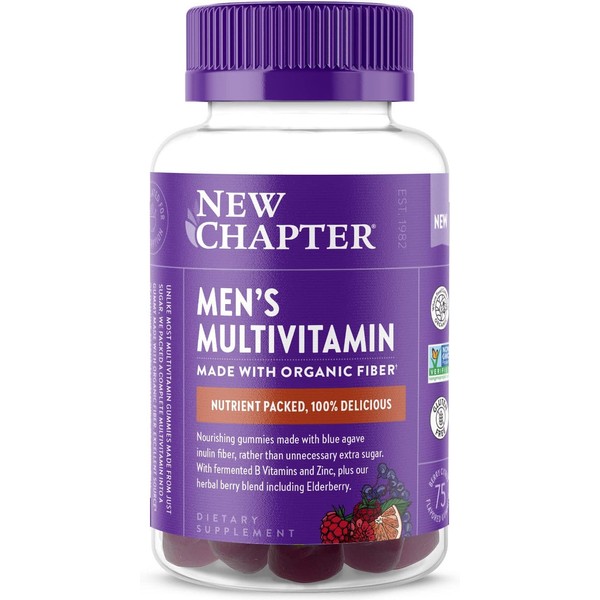 New Chapter Men’s Multivitamin Gummies, 66% Less Sugar, Men’s Gummy Vitamins with Vitamin C, D3 & Zinc, Non-GMO, Gluten Free, Berry-Citrus, 75ct