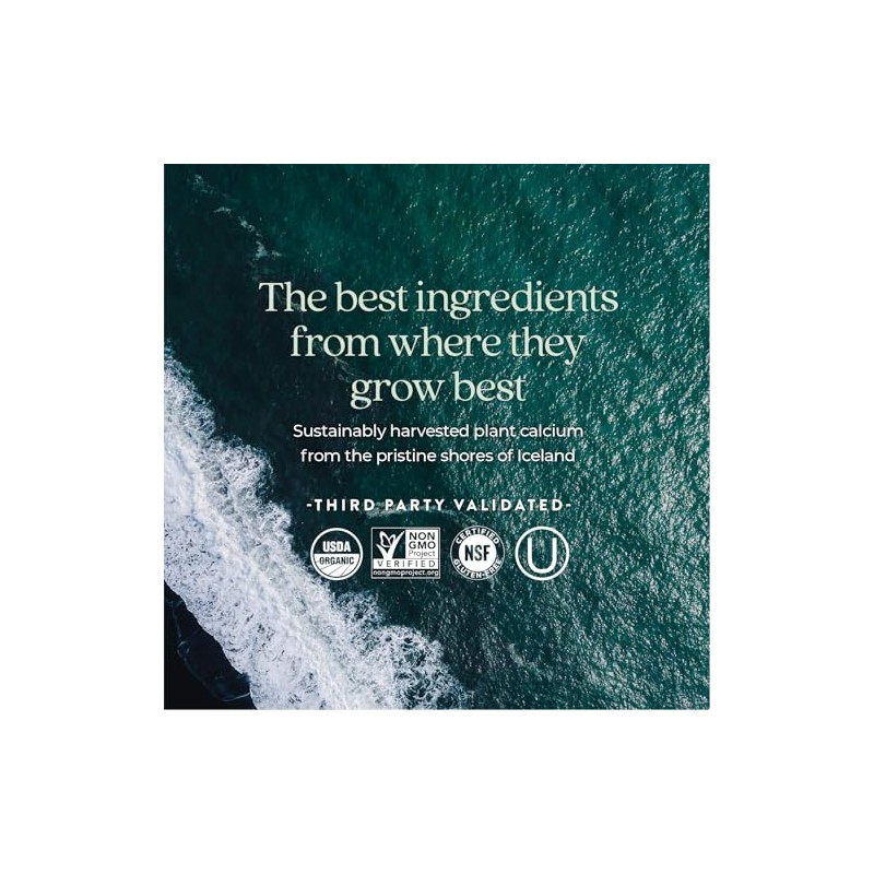 - SUSTAINABLY HARVESTED: Our USDA organic plant calcium is from Red Marine Algae sustainably wild-crafted from the coast of Iceland