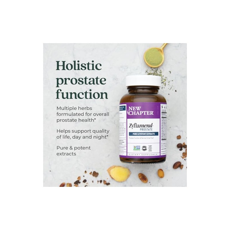 Supporting prostate health is a concern for every man over the yearsand New Chapter can help. Zyflamend Prostate is a unique herb-mineral blend that takes a combined approach to prostate support and normal urine flow.* For a 3-in-1 benefit with a truly whole-food approach, Zyflamend Prostate gives you prostate-supportive herbs including Saw Palmetto to support normal urine flow, fermented Selenium to support healthy antioxidant response, and Turmeric, Green Tea, and Rosemary to help quench free radicals and support healthy aging. Discover the herbal approach prostate supplement from the Wisdom of Nature. *These statements have not been evaluated by the Food and Drug Administration. This product is not intended to diagnose, treat, cure, or prevent any disease.
