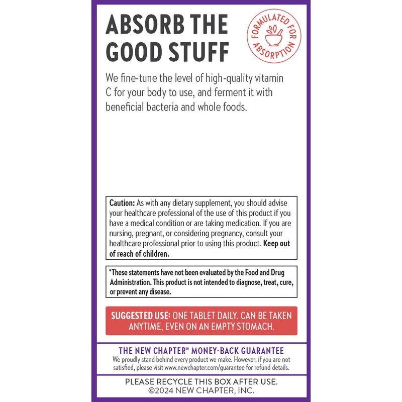 Power up your body's first line of defense with New Chapter Vitamin C + Elderberry supplement formulated for absorption. A lot goes into our vitamin C, including fermenting with whole foods and beneficial bacteria, and fine-tuning levels your body can actually use. Why is C so key? Your body doesn't make its own Vitamin C, so get your daily dose of this immune booster vitamin from reliable supplements like Immune Defense, enhanced with superfood Elderberry. Designed to help you feel your best! *These statements have not been evaluated by the Food and Drug Administration. This product is not intended to diagnose, treat, cure, or prevent any disease.
