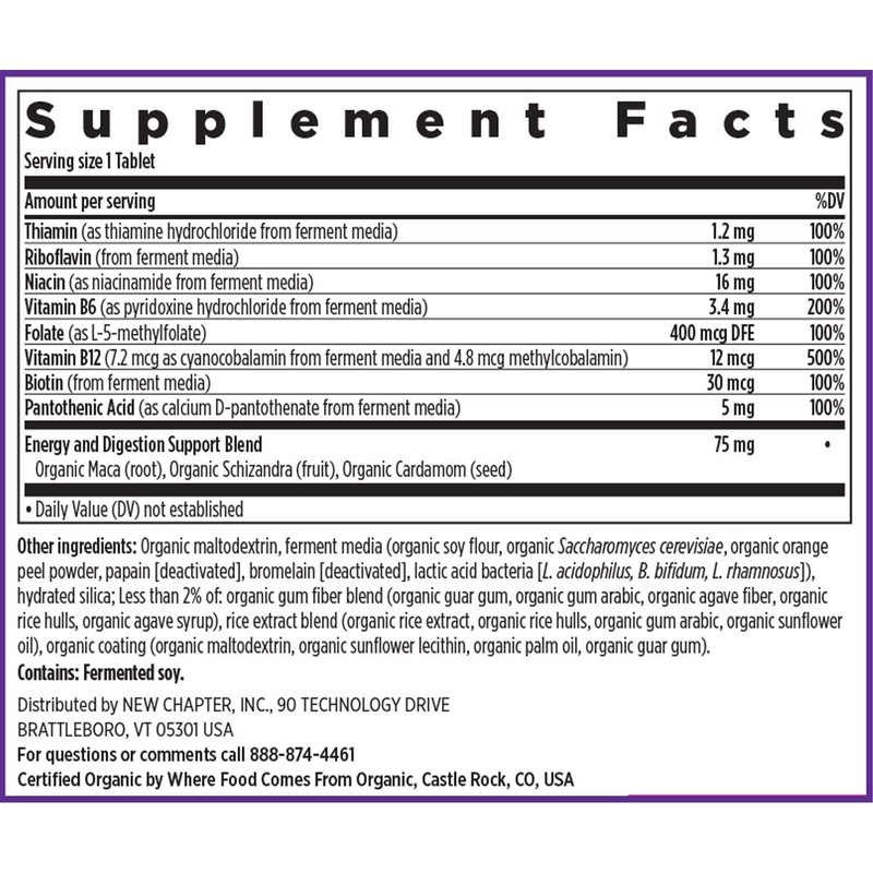 New Chapter Vitamin B Complex, Fermented Vitamin B Complex, USDA Organic, ONE Daily for Cellular Energy + Brain + Beauty, 100% Vegan, Gluten-Free - 60 Count