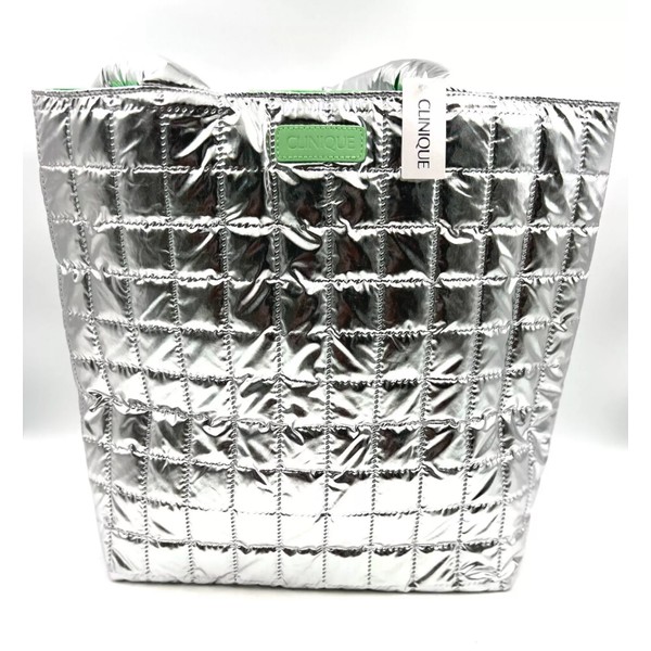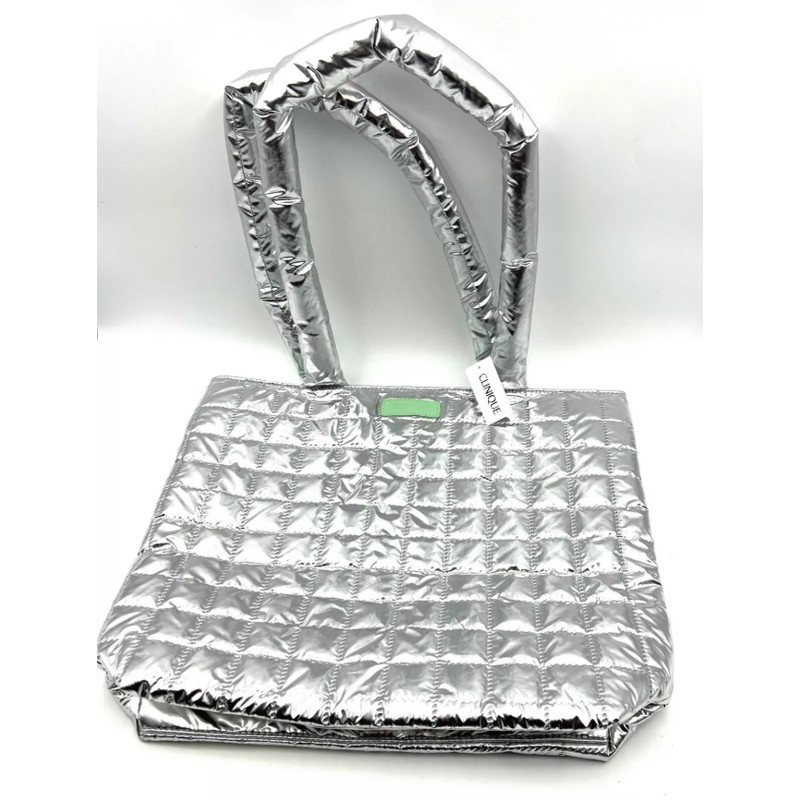 New! Clinique Makeup Shopping Shoulder Tote Bag~ Silver Strip