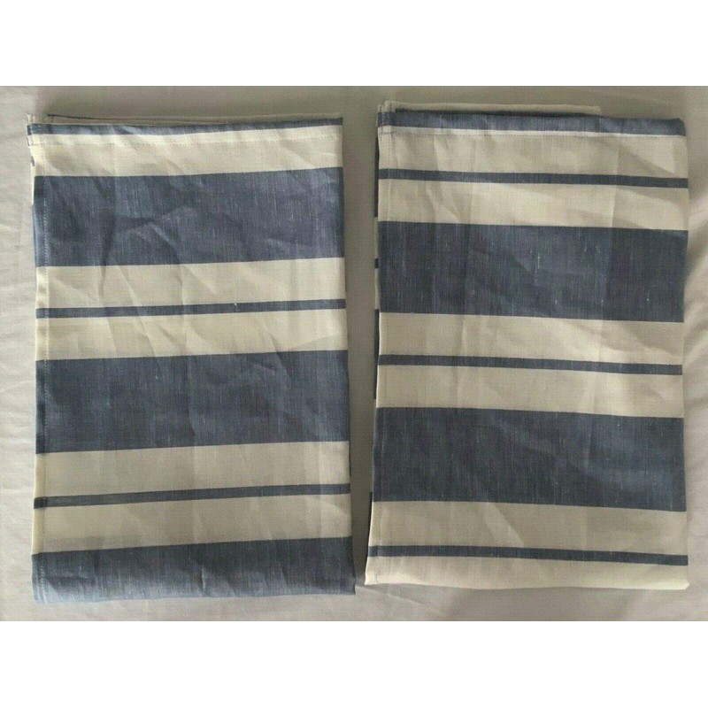 NEW COTTON LINEN BLEND HANDMADE BATH TOWELS SET of 6 SIX COTTAGE STRIPE FRENCH SKY BLUE